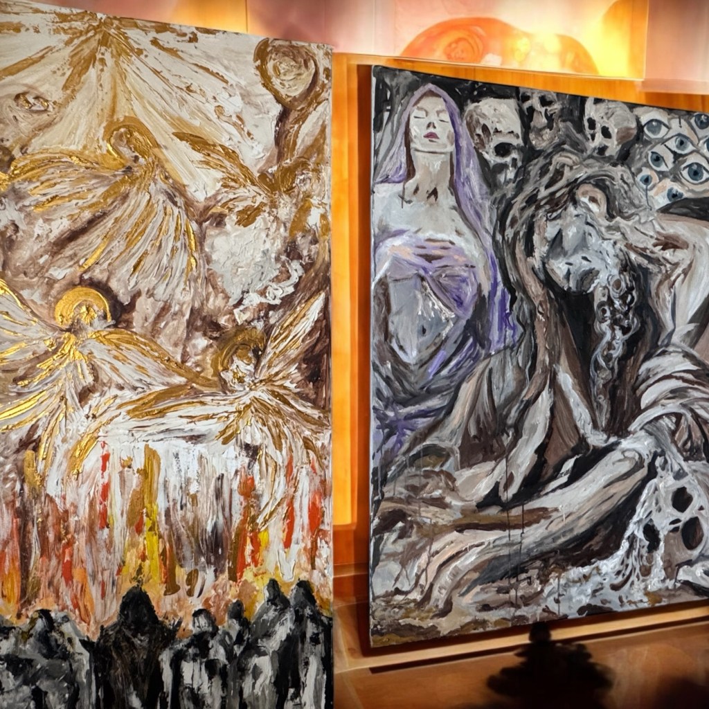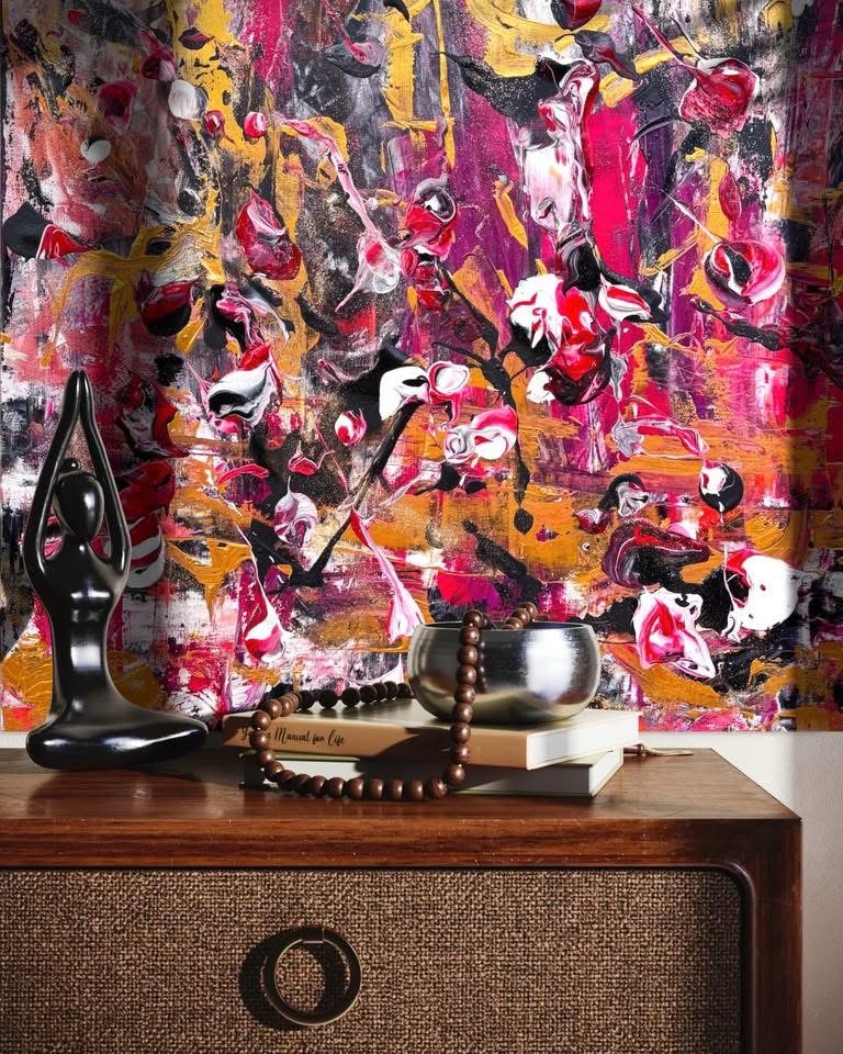 La sua arte non si limita a parlare all’anima, ma dialoga con lo spazio, elevando la frequenza dei luoghi in cui è collocata, trasformando case, studi o luoghi di cura in templi vibrazionali.